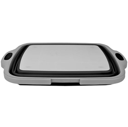 For mess-free prep for your next BBQ, the Drip EZ Prep tub has you covered! This tub is perfect for applying dry rubs or marinades without spilling. It also collapses so you can use the built in cutting board after your food comes off the grill. After Prep is done, clean it out and fill it with ice to keep your beverages cold. The collapsible design makes the Drip EZ original black tub compact for space saving storage. A locking lid stays secure when moving or for temporary food storage.